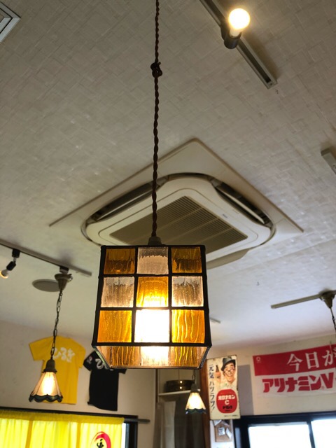 照明器具は、店内の雑貨や雰囲気に合わせて、ステンドグラス風のレトロなペンダントライトをチョイス♪