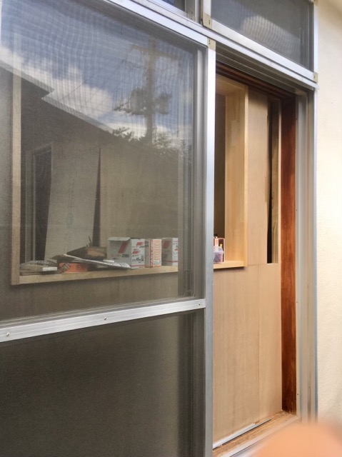 掃き出し窓のところに壁を作り目隠しにしました!すべて閉じてしまうと、暗くなってしまうため、広めの両開きの窓も付け、光を取り込めるようになっています。